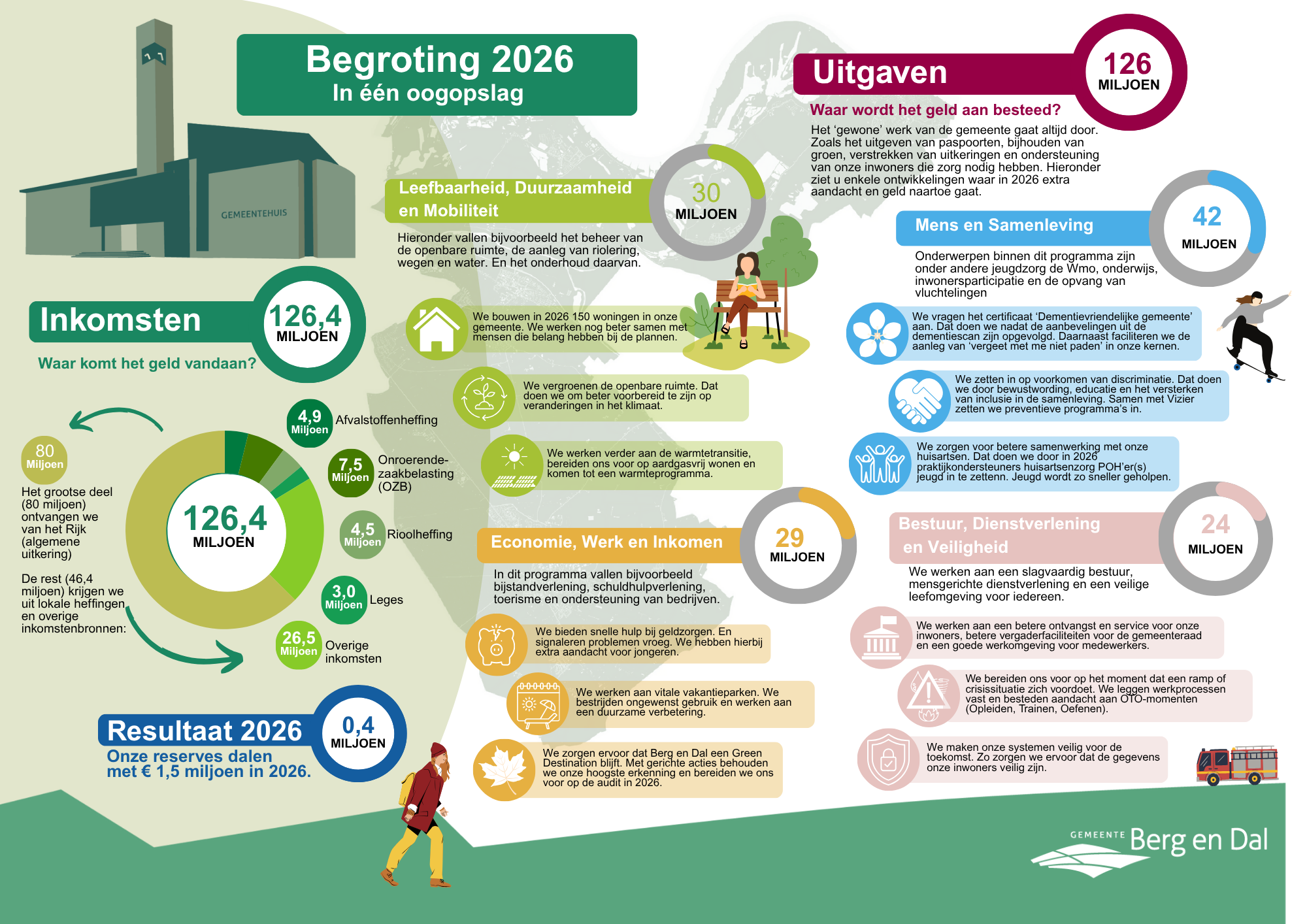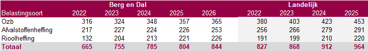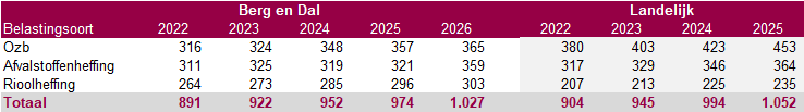 Hieronder ziet u de begroting in beeld en kunt u zien wat u gemiddeld betaalt aan de gemeentelijke belastingen ozb, afvalstoffenheffing en rioolheffing. Daarnaast is ook het landelijk gemiddelde aangegeven.