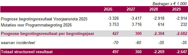 - De programmabegroting 2026 met een saldo van € 427.000 positief vast te stellen, inclusief: